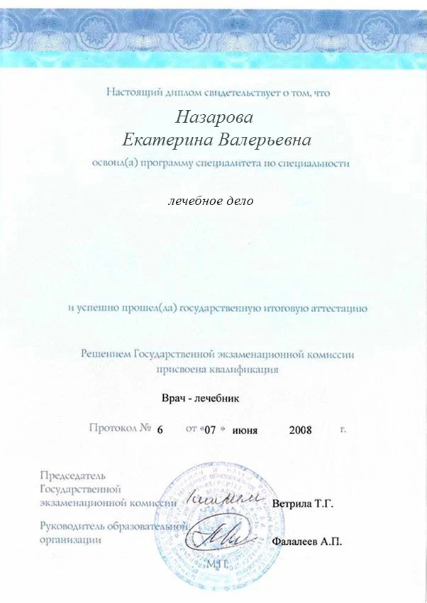 Главная Врачи Назарова Екатерина Валерьевна